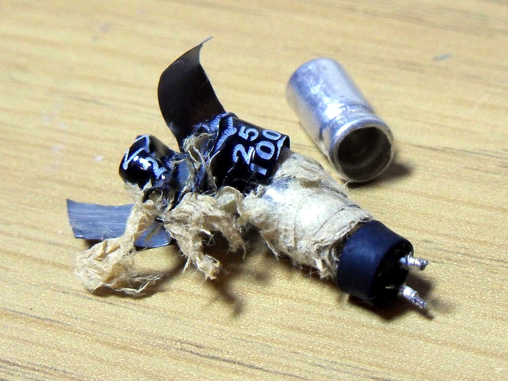 Разрушение со взрывом характерно для электролитических конденсаторов. Причиной взрыва является нагрев, который возникает из-за: