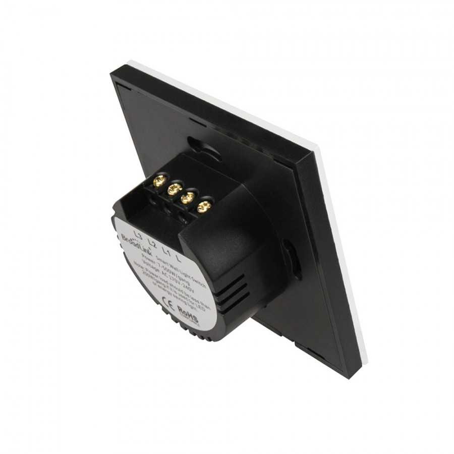 Выполнен в белом цвете. Устройством можно управлять со смартфона, с использованием беспроводных кнопок. Возможно включение/выключение света по реакции на вход/выход человека. Монтаж осуществляется на стене в месте крепления обычного выключателя и подключается к сети 220 В.