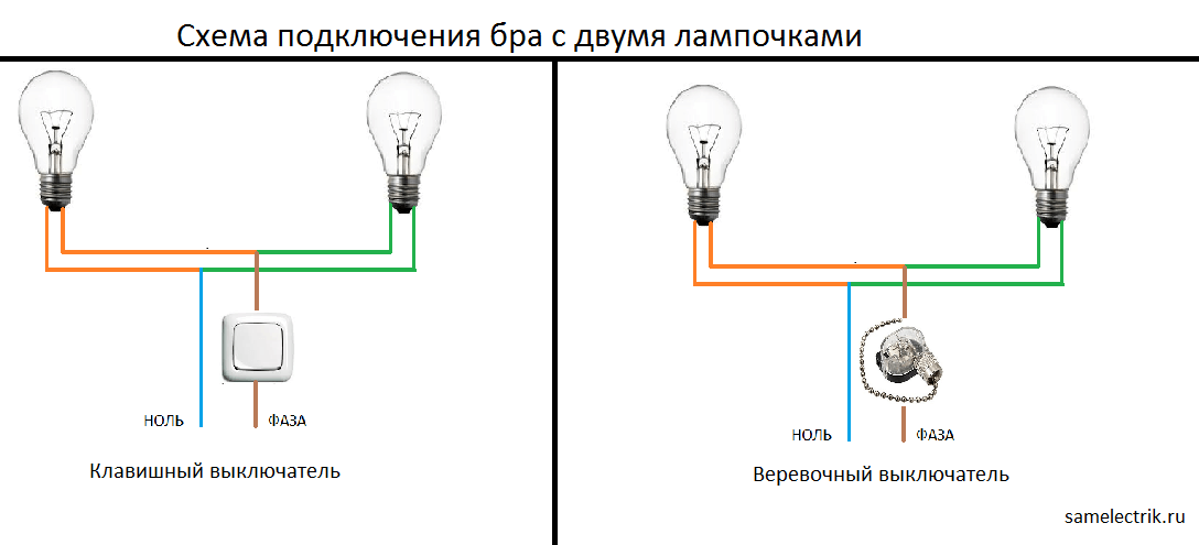 При монтаже одноклавишного переключателя понадобятся двухжильный провод и устройство включения. Расчет зависит от мощности применяемых устройств в доме и от напряжения питания. Можно использовать клемники Wago на соответствующее количество подсоединяемых проводов. Лампочки подключать в систему парами —последовательно и после вывести параллельно. Особенностью его конструкции является наличие двух выходных выводов, каждый из которых может соединиться с входным фазным выводом независимо друг от друга. КАК ПОДКЛЮЧИТЬ БРА С ВЫКЛЮЧАТЕЛЕМ ЭЛЕКТРИКА