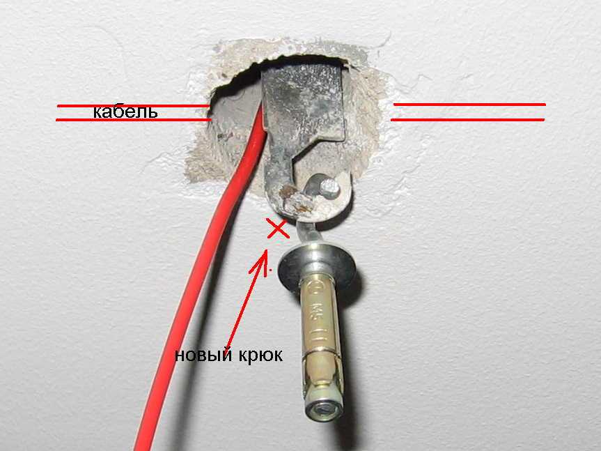 Это позволит лучше защитить провода. Если провод устанавливается в базовом потолке, понадобится штроба — специальный канал глубиной от 5 см. Прикреплять люстру к анкерному крюку следует после того, как проверена надежность крепления. Сделать это можно, например, с помощью 16-килограммовой гири, навешенной на толстой веревке.
