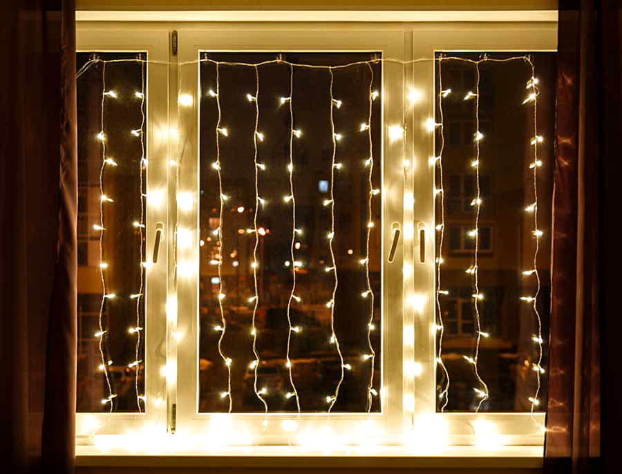 Такая гирлянда особенно украсит окно в вечернее время суток