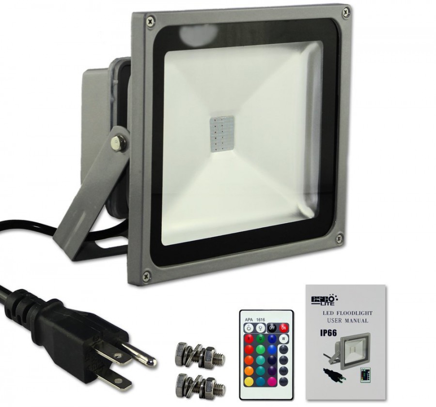 - Спектр, универсальными считаются прожекторы с белым светом, а для декоративной подсветки – нужны модификации с технологией RGB.
