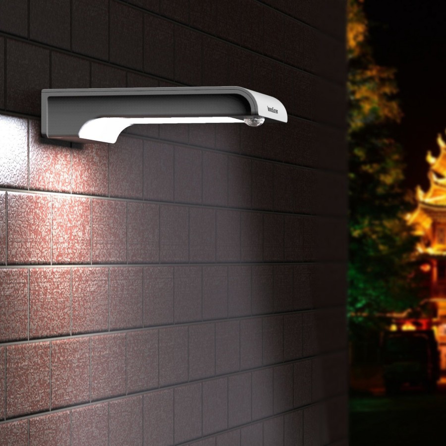 5 место рейтинга занимает модель от германского бренда в стиле хайтек. Мощность 15 Вт выдает 1100 люмен, что при теплоте свечения 4000 K вполне достаточно для придомовых территорий, жилых зон. Корпус изготовлен из качественного поликарбоната со степенью защиты IP55. Характеристики на первый взгляд не самые впечатляющие, но указаны с предельной честностью. Прожектор оснащен датчиком движения. Крепление быстросъемное, на посадочной платформе. Из недостатков — сложность с регулировкой направления и цена.