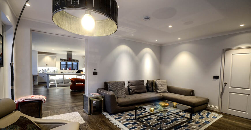Прямой свет. Световой поток исходит от излучателя и направлен на место, которое должно быть освещено. Примером светильников прямого света можно назвать прожекторы, споты, даунлайты, подвесные светильники, световой поток которых направлен в определенную сторону (к примеру, в интерьерах в стиле лофт и минимализм) или потолочные. Они обеспечивают необходимый уровень освещенности на поверхности, не засвечивая остальное пространство.