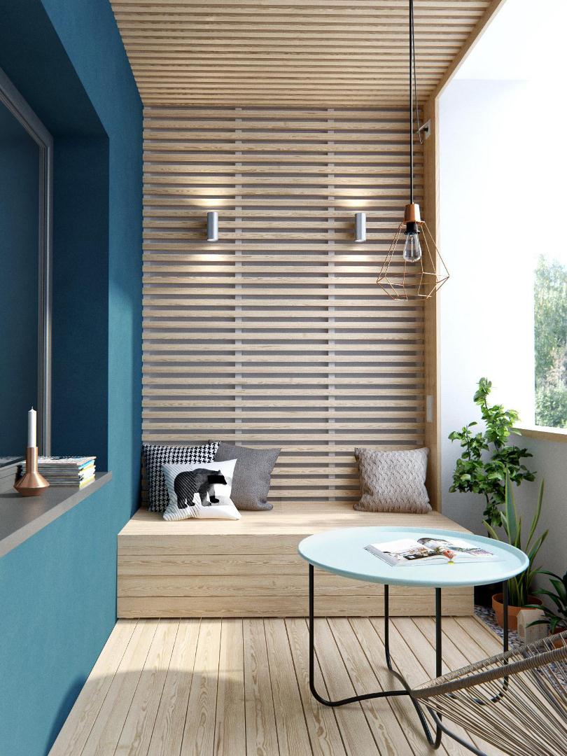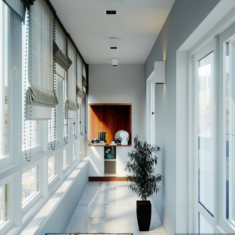 - Если на балконе будут читать или использовать его в качестве кабинета, желательно установить поворотники, чтобы появилась функция регулирования потока света. Также возможна установка дополнительных светильников в местах, где свет особенно нужен.
