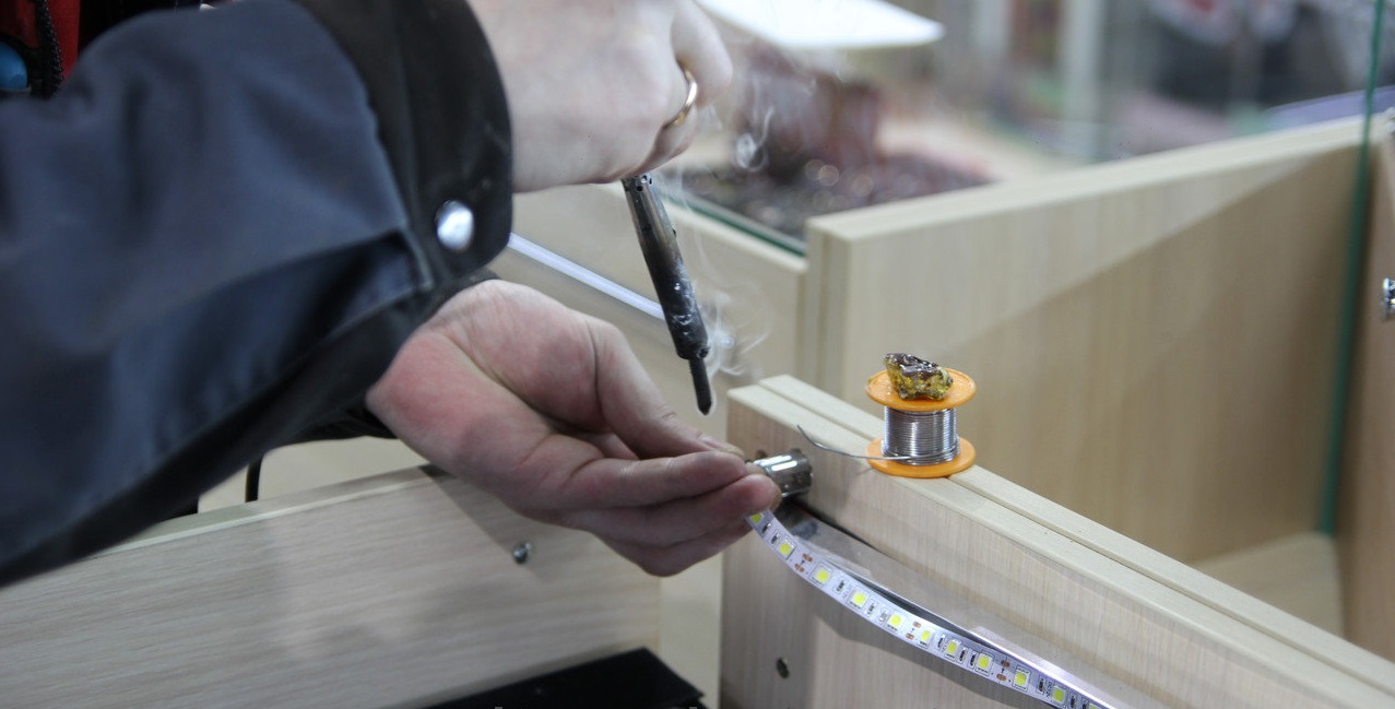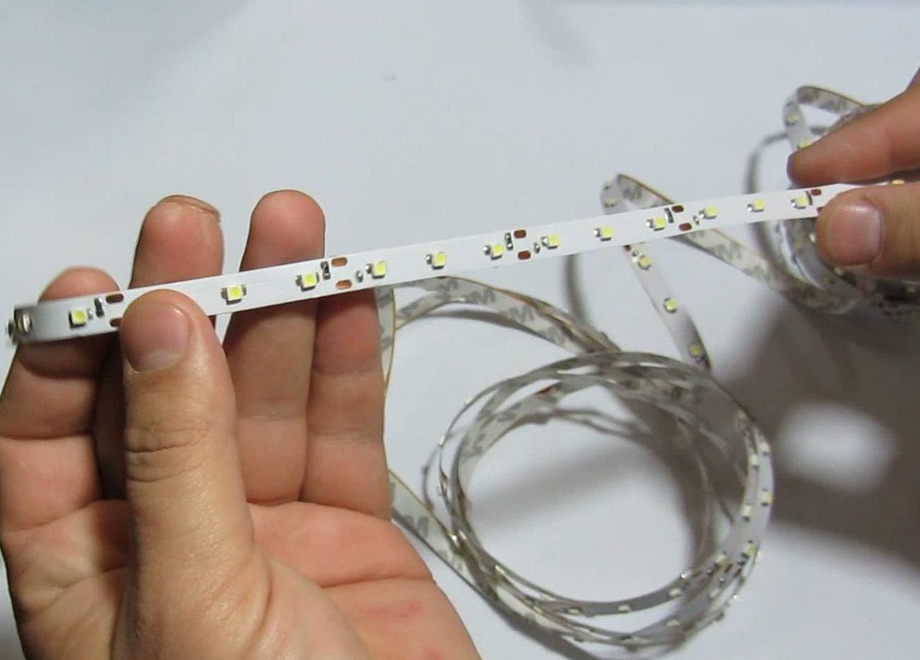 Когда источник света скрыт в специальном профиле или на тыльной стороне конструкций, её гораздо проще отремонтировать. Просто найдите границы нерабочей области и обрежьте ленту по линиям разреза (как правильно резать светодиодную ленту).