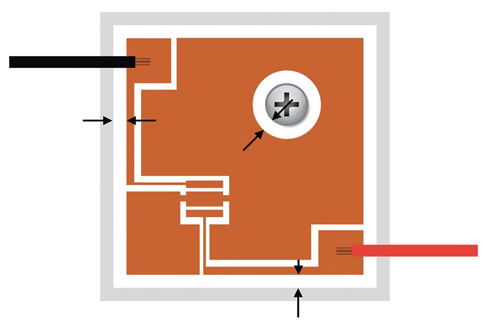 Другим важным фактором при проектировании печатных плат являются медные следы рядом с винтами. Расстояние должно быть рассчитано с учетом диаметра головки винта, а не отверстия для печатной платы