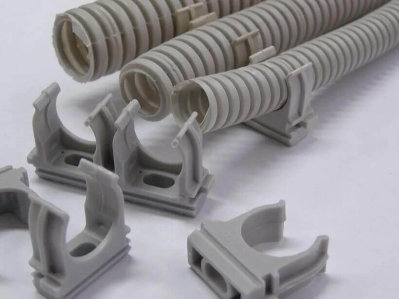 Она не распространяет горение, защищает проводники и позволяет использовать дюбель хомуты или клипсы для быстрого крепления провода к потолку.