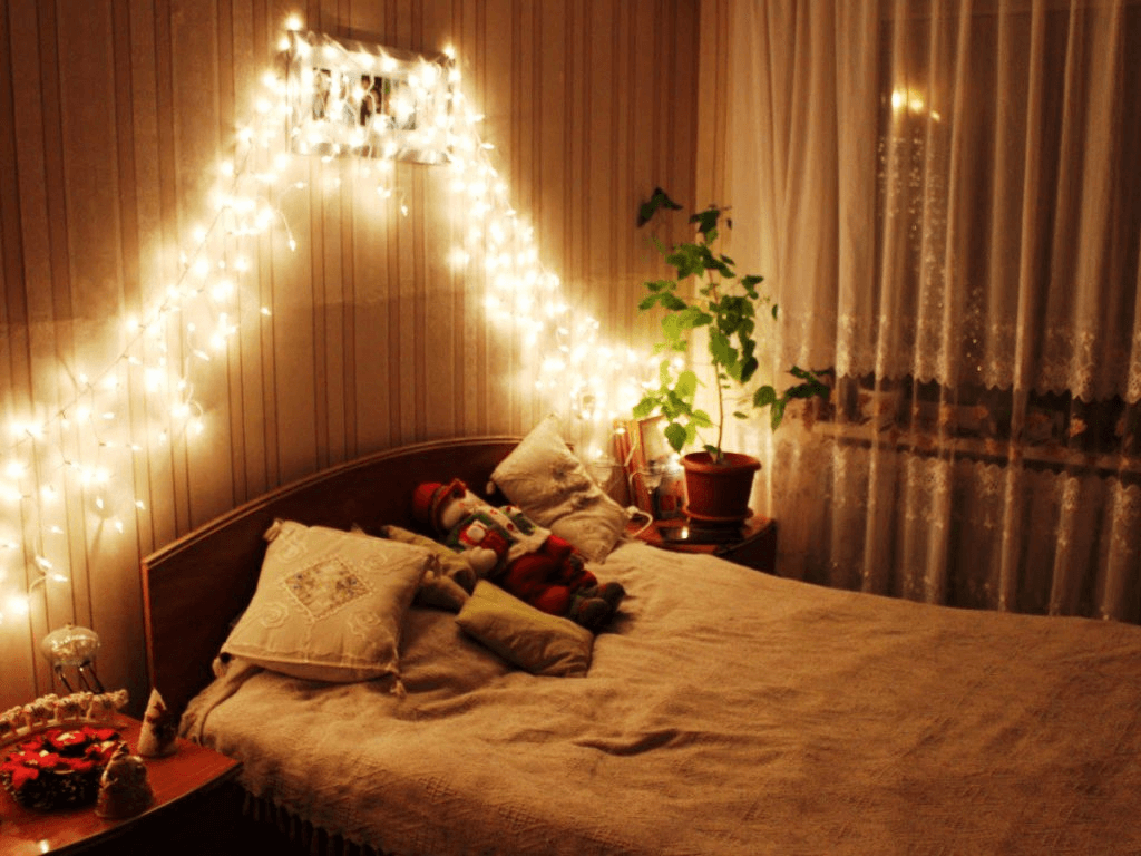 Хорошо смотрятся гирлянды в комнатах винтажного стиля, шебби-шика, прованса, лофт.