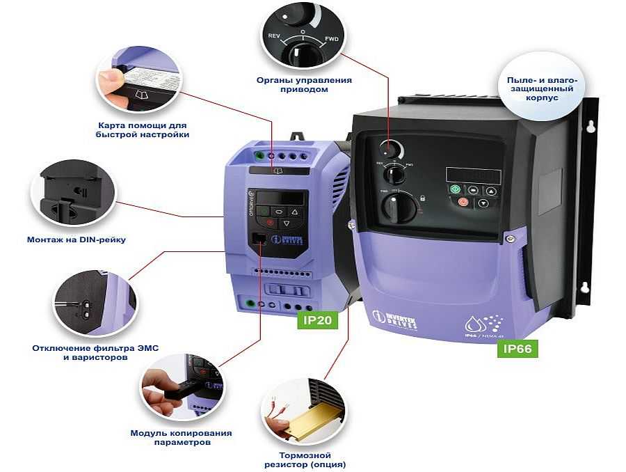 Устройства, предназначенные для управления частотой, могут функционировать в условиях подключении однофазного типа или за счет трехфазного электропитания. При эксплуатации источников постоянного тока, которые имеют напряжение в 220 В, то они могут также использоваться для подключения инверторов.