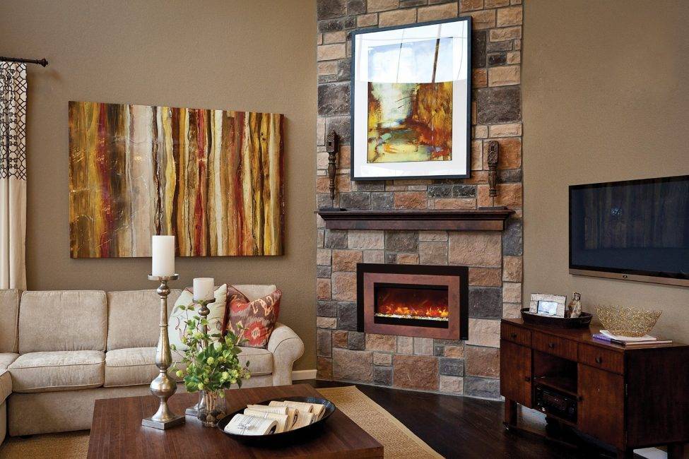 Одним из популярных видов отопительных приборов являются электрические настенные камины. Основное отличие от других типов каминов заключается в том, что местом их установки является стена. Как это выглядит, смотрите на фото.