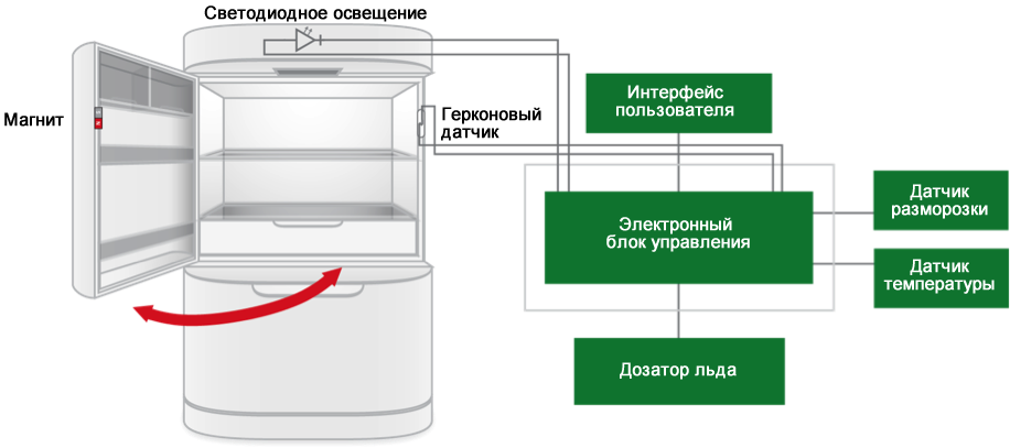 Рисунок 1 – Геркон в двери холодильника используется для включения и выключения светодиода
