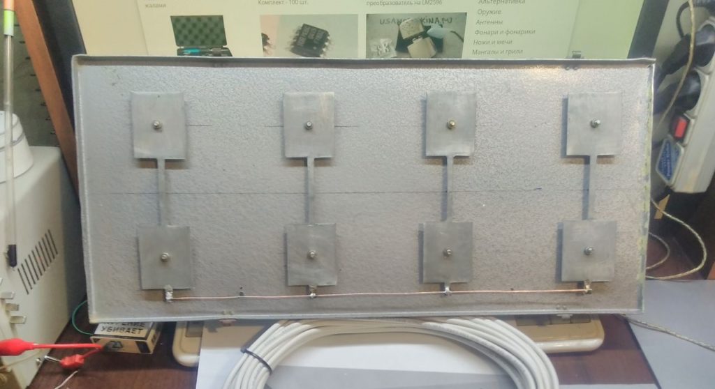 Представляет собой большую металлическую пластину с закрепленными на ней патчами или небольшими панелями для лучшего улавливания. Для создания 4G антенны — «пушки» — своими руками нужно купить: