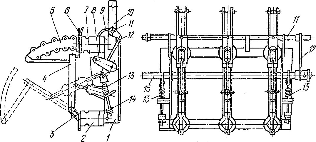 В конечных точках вала имеется по паре пружин отключения. Они ускоряют процесс разъединения выключателя в момент высвобождения системы, где привод свободно расцепляется. В этих же местах установлены буферные резиновые прокладки, предотвращающие механические удары во время отключения.
