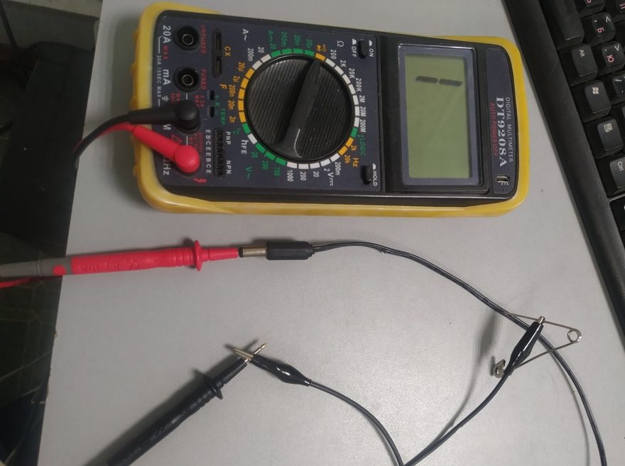 Более щадящий и точный способ – с помощью мультиметра и иголки (булавки). Подключившись одним щупом тестера к разъему а другим к острому тонкому предмету, надо прокалывать изоляцию до жилы, продвигаясь все дальше. После прохождения места перелома тестер покажет обрыв.