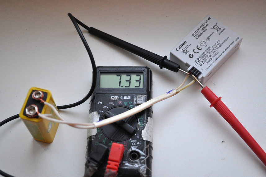 - Попробовать подключить аккумулятор к обычным батарейкам с помощью проводков.