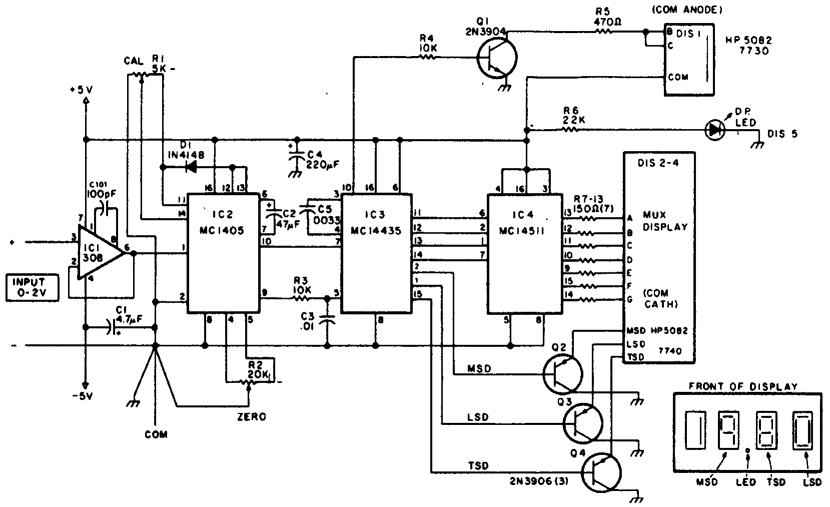 Схема цифрового вольтметра постоянного тока для определенного диапазона