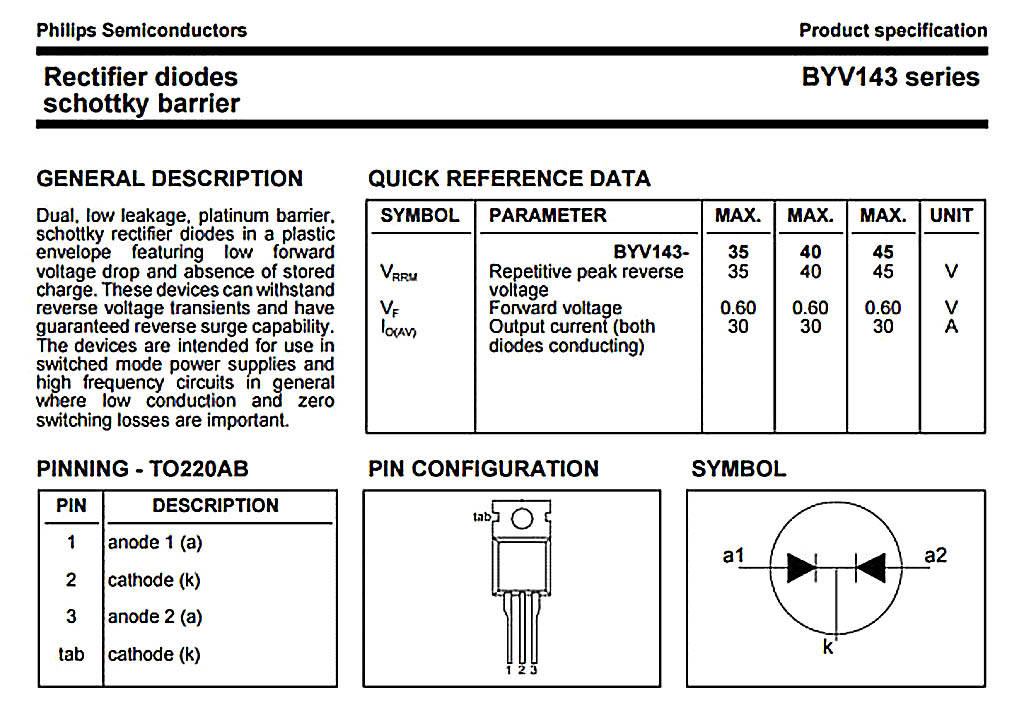 Спецификация на сборку диодов Шоттки для выпрямителя зарядного устройства автоаккумулятора