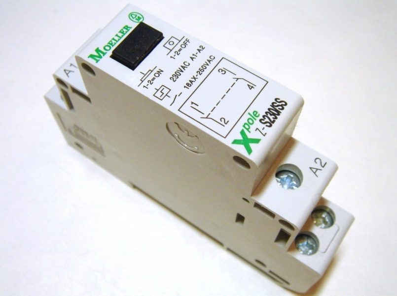 Реле на DIN-рейку для монтажа в распределительном щитке имеют более компактные размеры, в них нет ничего лишнего.