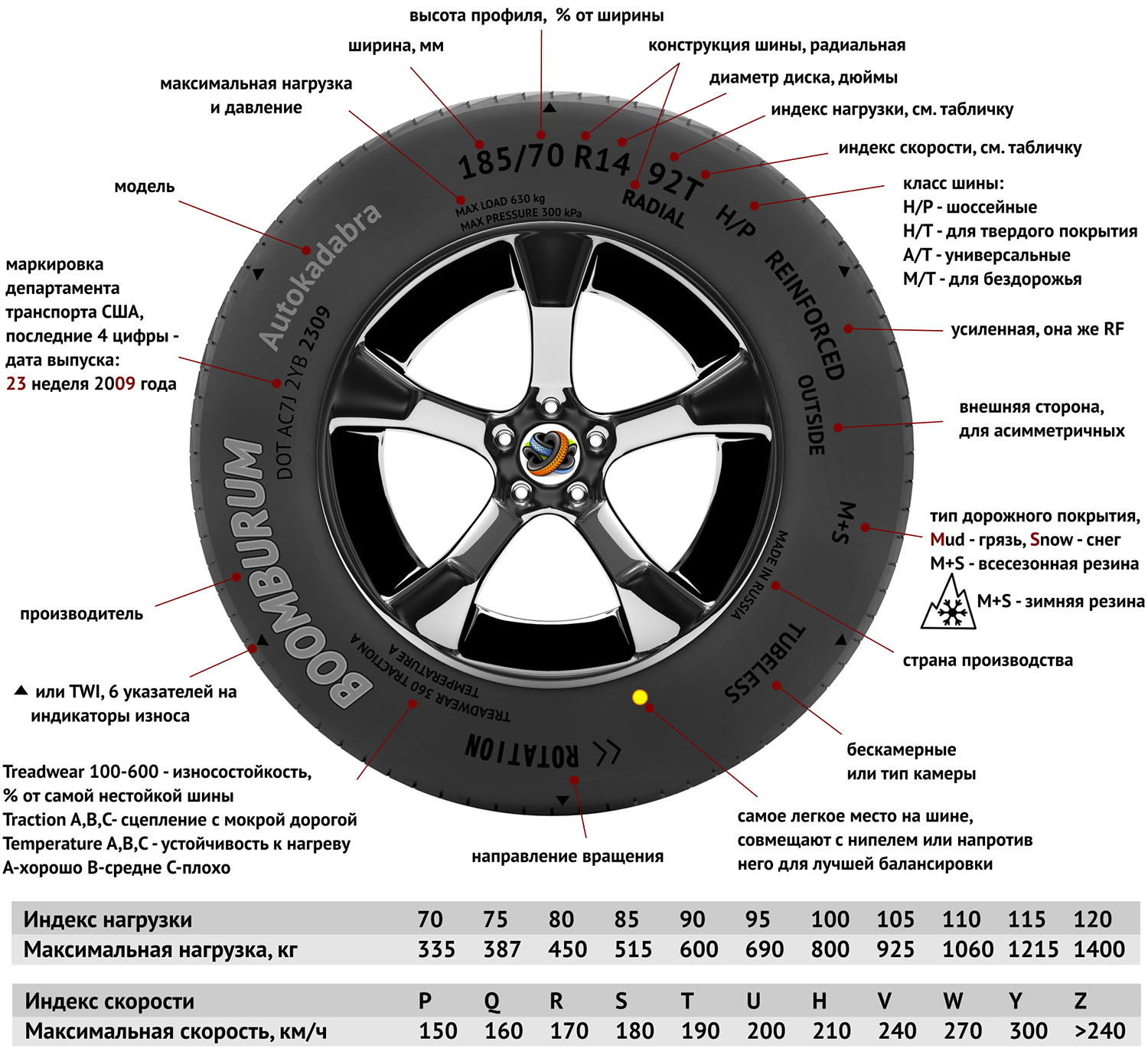 Вбитые надписи на покрышке