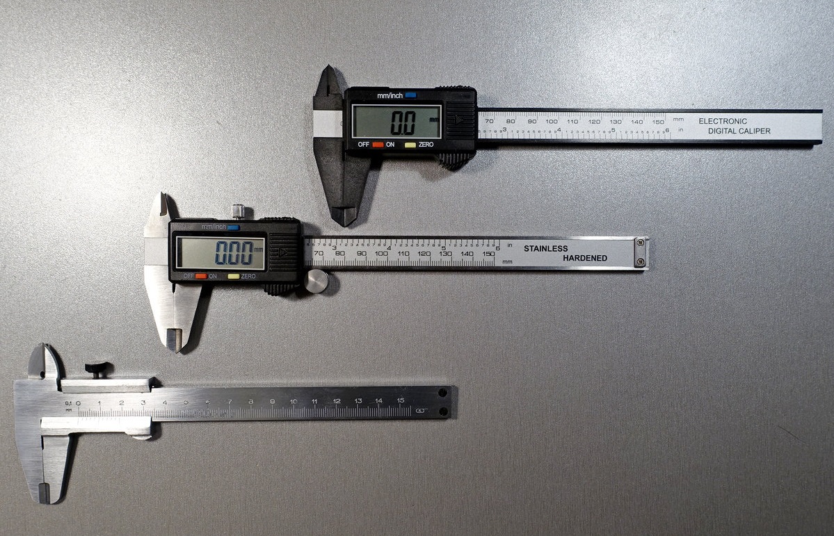 | Штангенциркуль | Состоит из линейки (штанги со шкалой делений), с одного конца которой находится неподвижная губка, а вдоль линейки перемещается подвижная. Зажав между ними деталь, можно получить ее наружный размер. У большинства штангенциркулей есть дополнительные верхние губки, которые предназначены для внутренних измерений. Таким образом, устройство сочетает в себе измерение нутромером и кронциркулем. Можно измерять не только длину и ширину деталей, но толщину металлических листов или проволоки. |