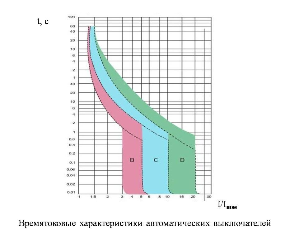 Отличие защитных характеристик C, B и D автоматических выключателей, области применения автоматов