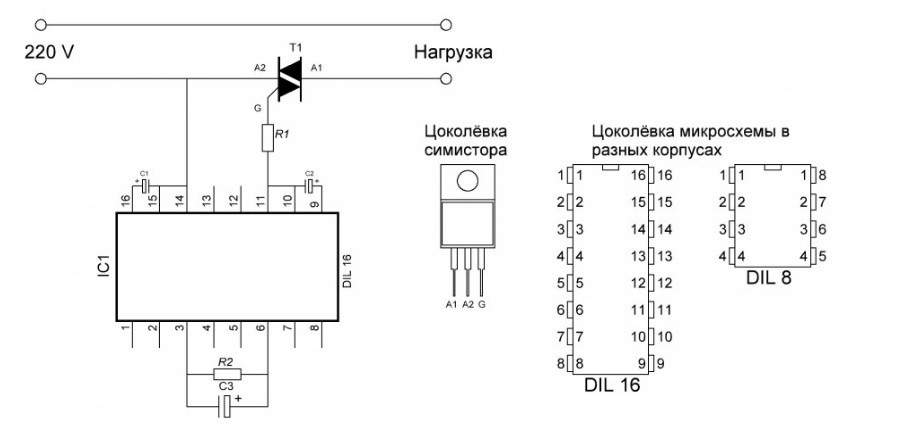 Плавный пуск пригодится для бытового ручного электроинструмента. При точном воспроизведении представленных ниже инструкций он выполнит функции защиты болгарки или насоса не хуже фабричного образца. Для повторения подойдет сравнительно простая конструкция на специализированной микросхеме КР1182ПМ1. Симистор подбирают с учетом нужной нагрузки по току. Электронный ключ BT138-800, например, рассчитан на номинальный ток силой до 12 А. Лучше выбрать его со значительным запасом, чтобы исключить перегрев. Такой подход поможет исключить радиатор.
