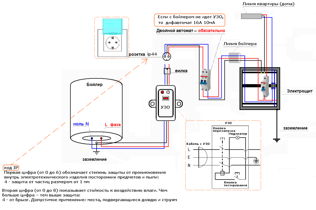 - Водонагреватель должен быть подключен через УЗО, поэтому обязательно используйте защитное устройство.