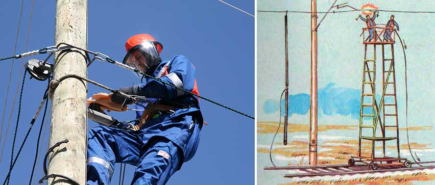 - Работы под напряжением или с его отключением, но с применением специальных средств персональной защиты. В таком случае действия работника несколько скованы, но зато удается избежать отключения или снижения надежности сети.