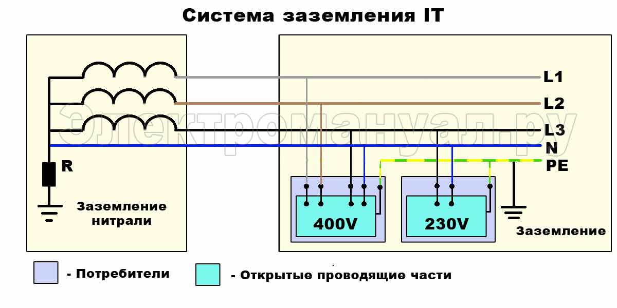 Системы заземления IT – это классический вариант изолированного от земли включения кабельных линий, не имеющий аналогов по степени гарантируемой им безопасности