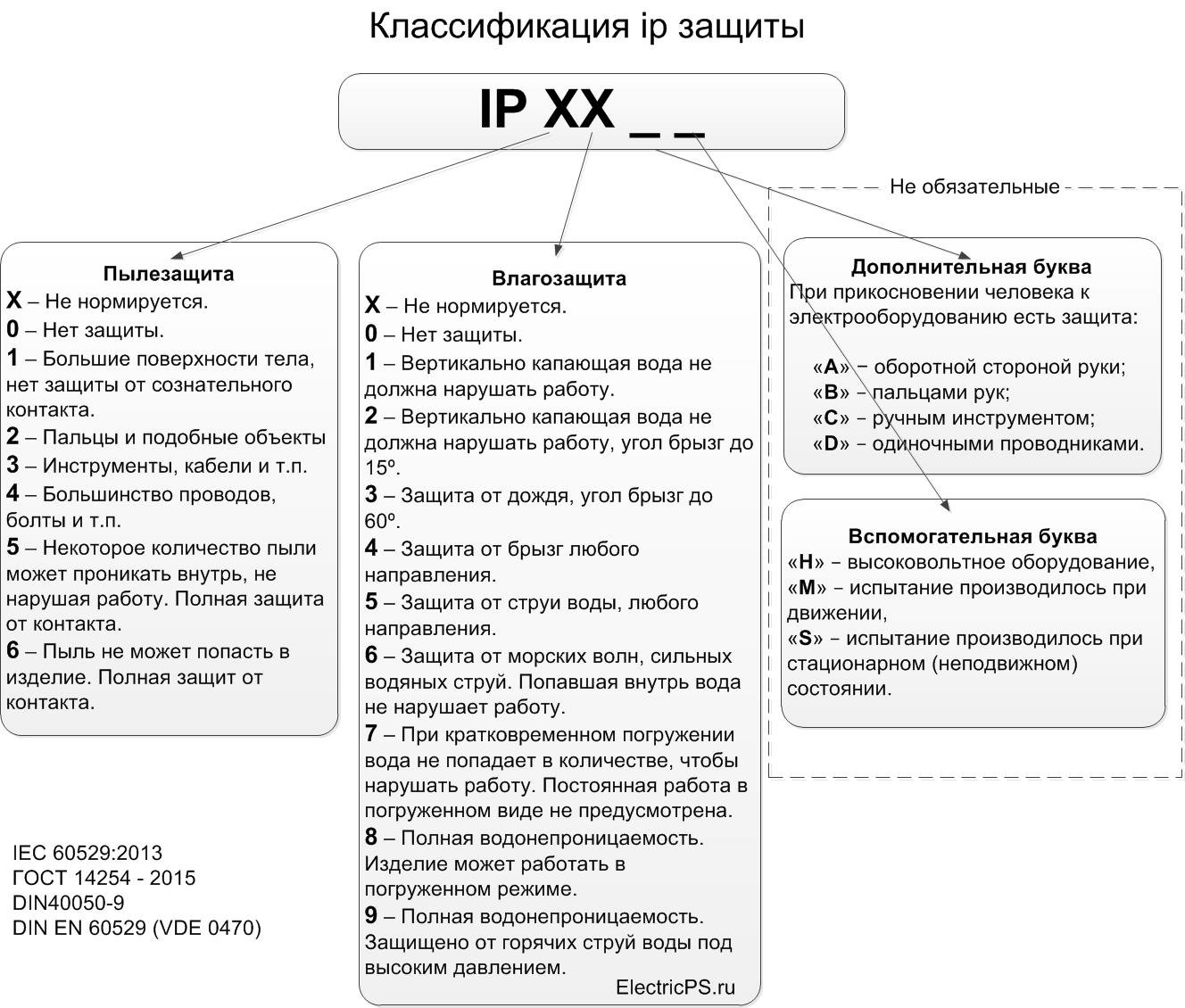 Для того чтобы стало понятней, что конкретно обозначает, каждая степень защиты в стандарте IP, дадим подробную расшифровку.
