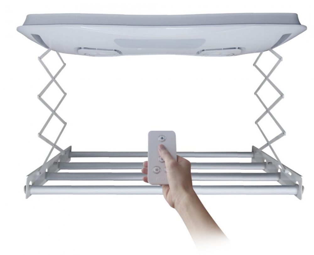 - Дистанционное управление. Пультом можно задавать время работы отдельных механизмов, опускать и поднимать балки для белья.