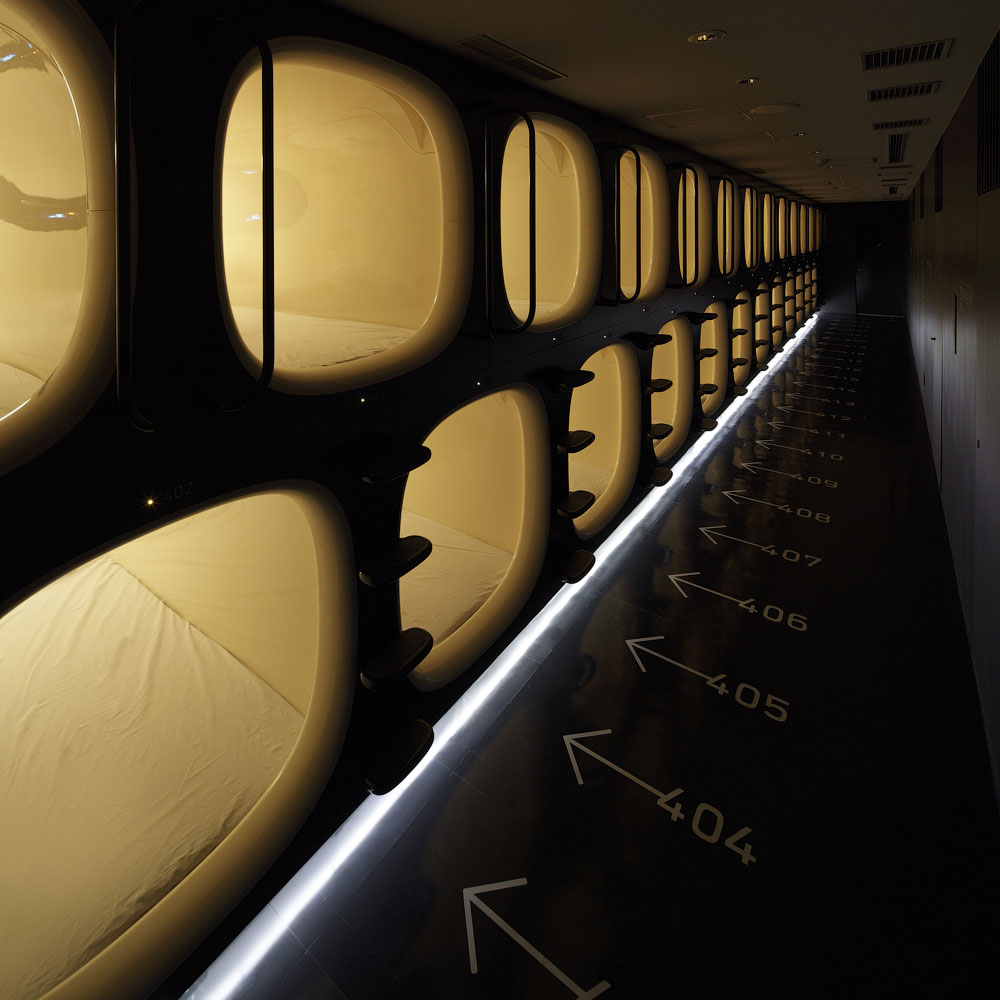 Отель включает 125 номеров-капсул для отдыха и ночлега.