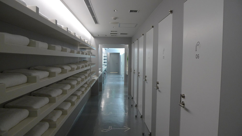 From reception, I passed through a set of double doors into a locker room. Each guest had a locker that shared the same number as his or her capsule.