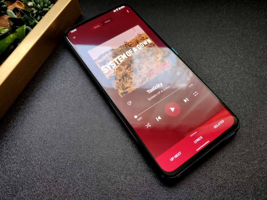 В ZenFone 6 формально установлено два внешних динамика, один расположен на нижней грани корпуса, а второй совмещён с разговорным. Но на практике, звучат они по-разному, по сути громкий динамик в смартфоне один, а второй ему лишь слегка подыгрывает. Но стоит отметить, что звучит нижний динамик в ZenFone 6 очень громко и на удивление объёмно. В нём используется сразу пять магнитов, которые позволили повысить громкость и уменьшить искажения. Звук этого динамика хорошо резонирует в корпусе, поэтому может показаться, что играет вся тыльная часть смартфона. Не в последнюю очередь это достигается благодаря усилителю NXP TFA9874.