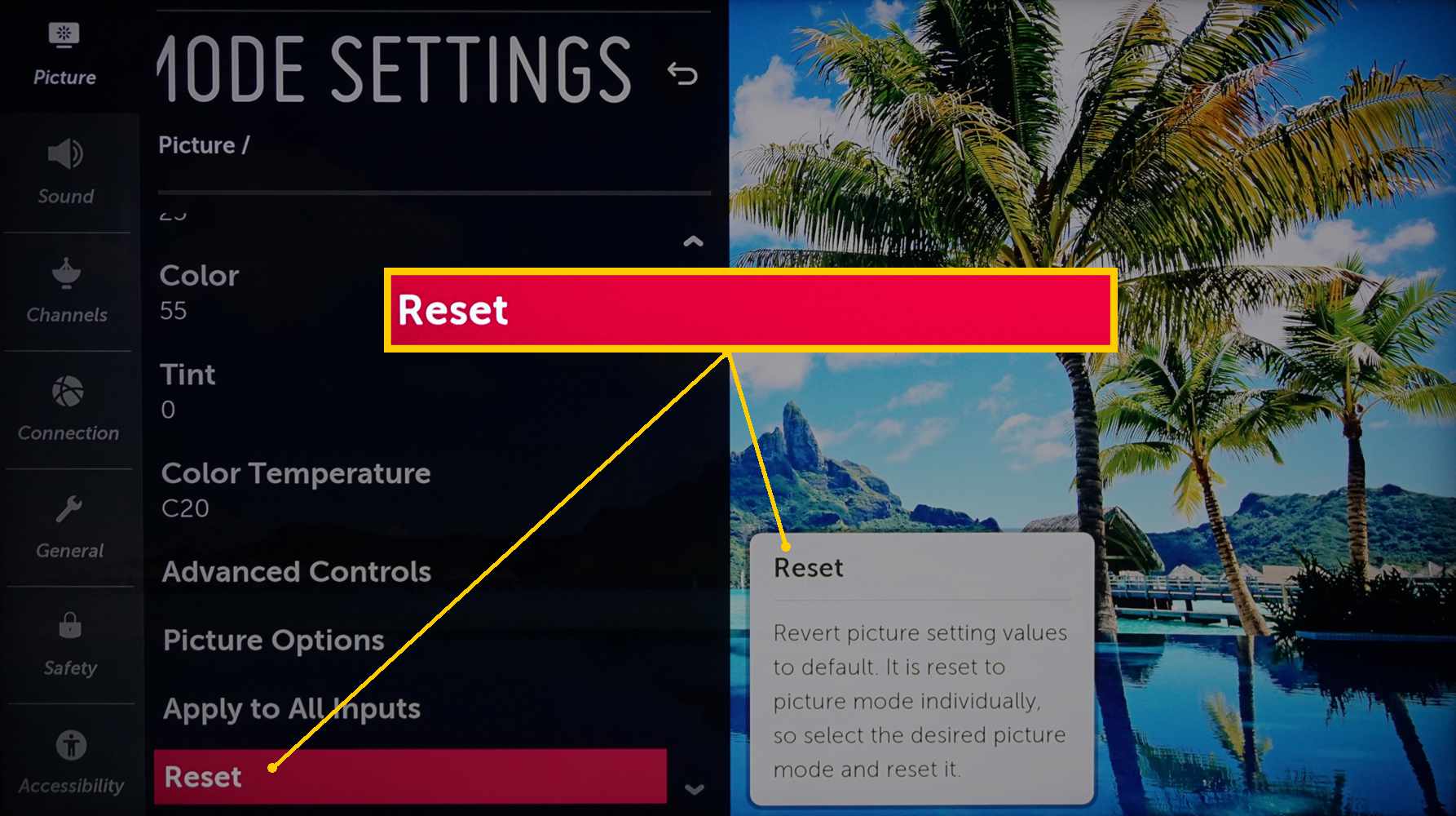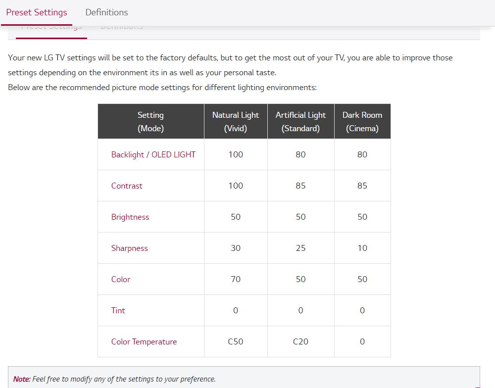 Выберите один из преднастроенных вариантов — готовых комбинаций параметров изображения: контрастности, яркости, резкости, и других. Они оптимизированы под определенный контент (фильмы, игры, спорт), условия освещения и визуальные предпочтения. Минимальное количество таких комбинаций в LG — 3-5 шт.