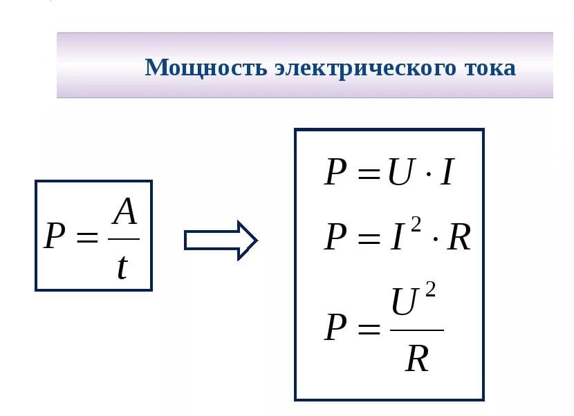 Мощность вычисляется с помощью сопротивления. Часто бывают известны сила тока и сопротивление цепи, а напряжение, обычно, неизвестно.