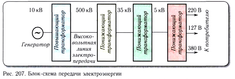 Рассмотрим блок-схему передачи и распределения электроэнергии (рис. 207): генератор переменного тока