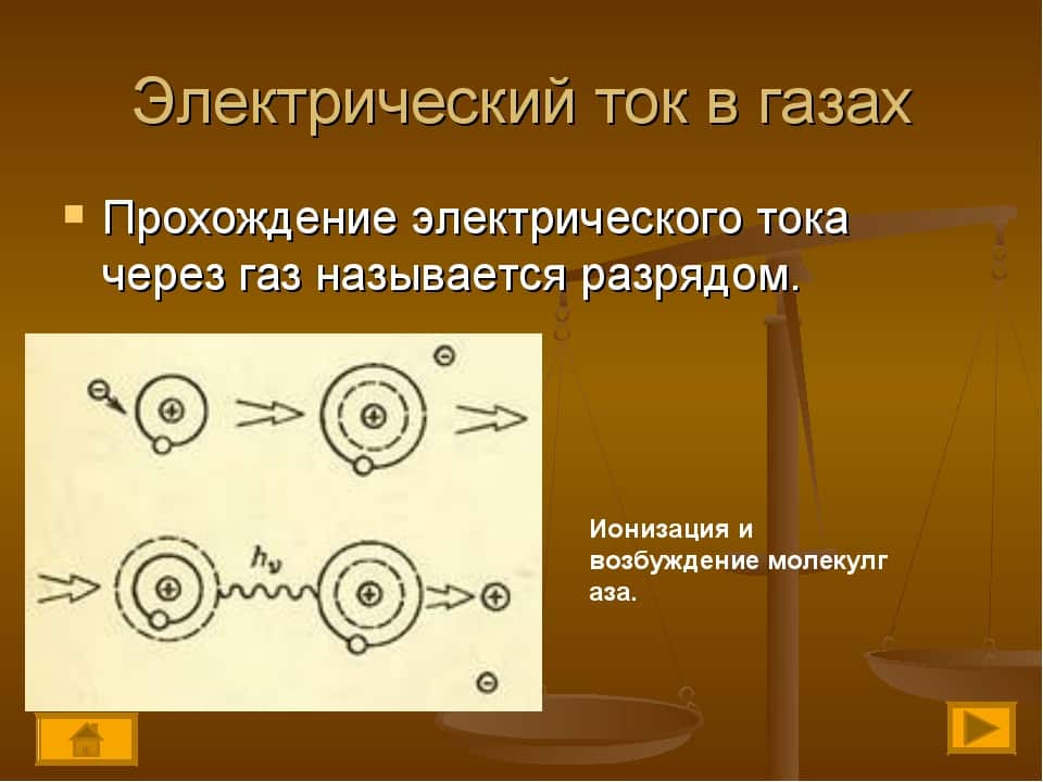 Электрический ток возможен и в ионизированном газе. Заряд переносится положительными и отрицательными ионами. Ионизация газов возможна под действием излучения или вследствие сильного нагревания. Под действием этих факторов возбуждаются атомы, которые превращаются в ионы (рис. 4).