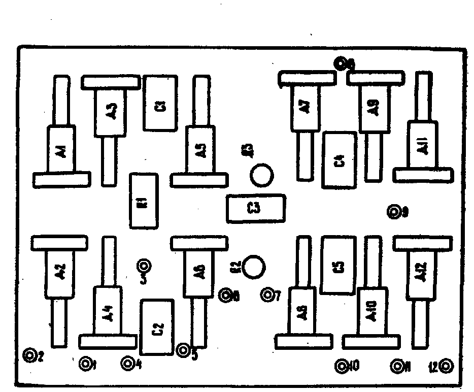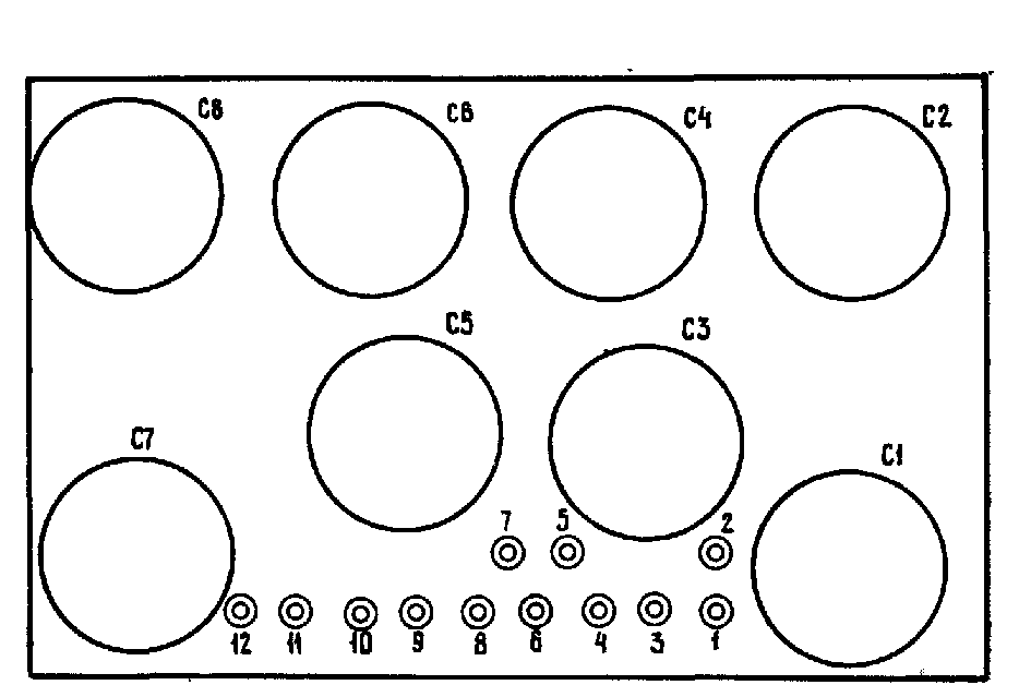 Рис. 16. Расположение элементов на плате конденсаторов.