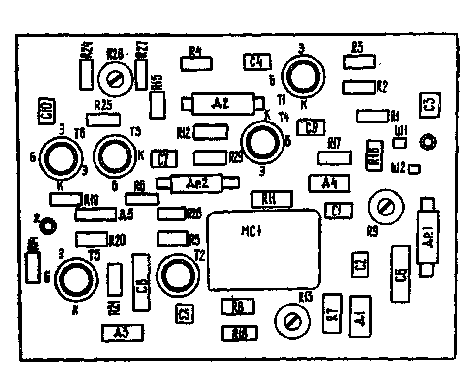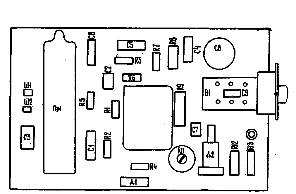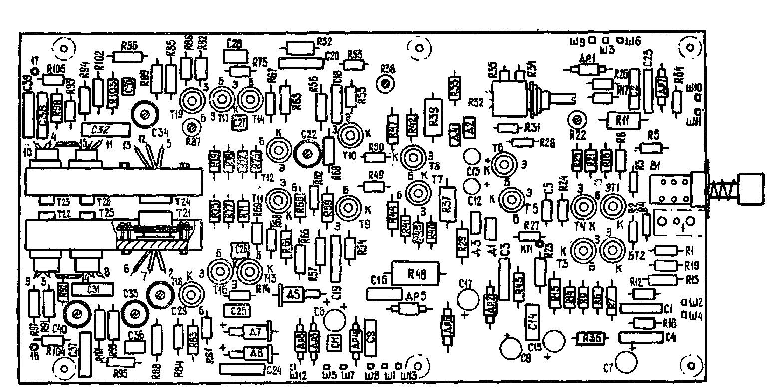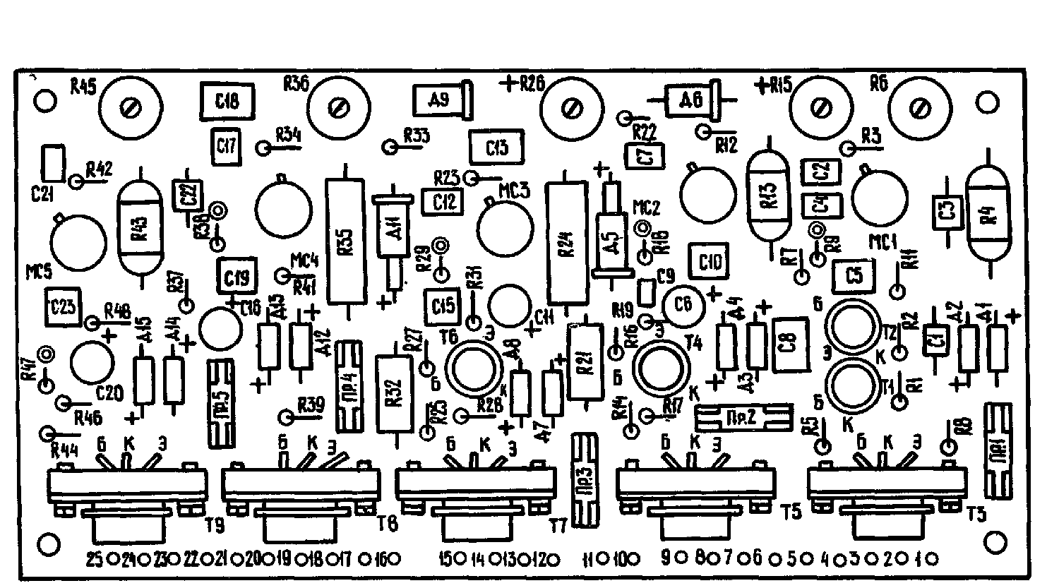 Рис. 9. Расположение элементов на плате усилителя импульсов подсвета.
