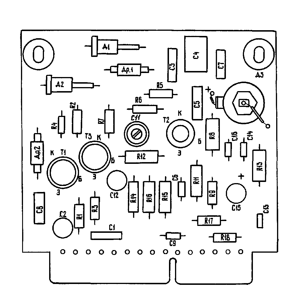 Рис. 15. Расположение элементов на плате стабилизаторов.