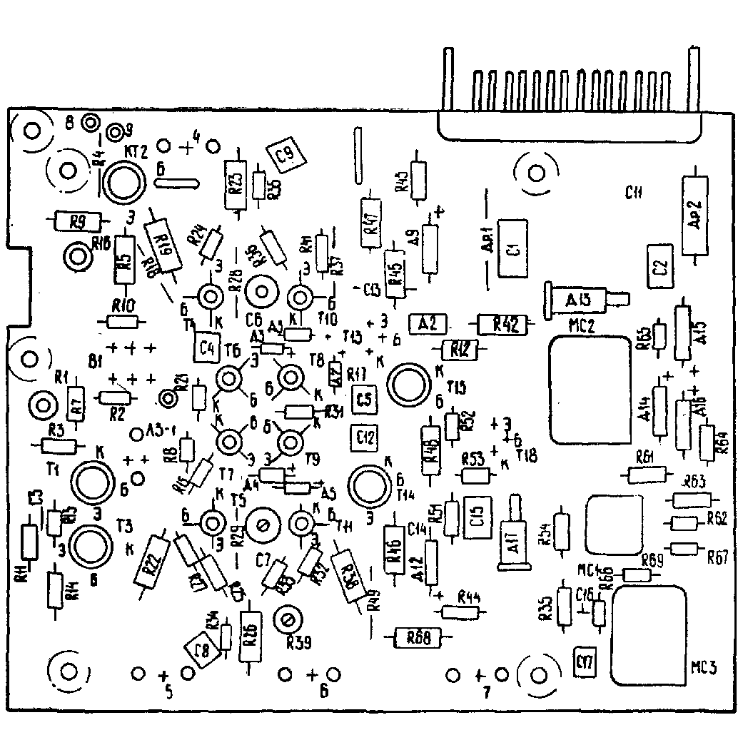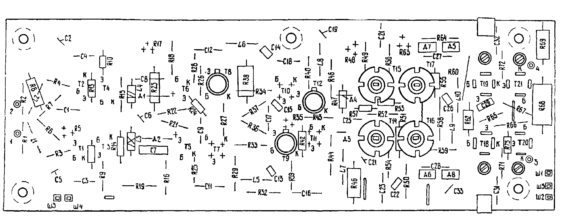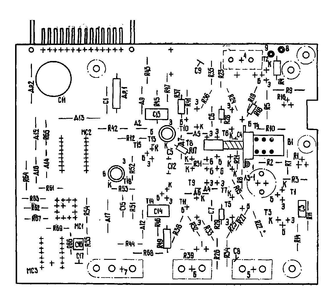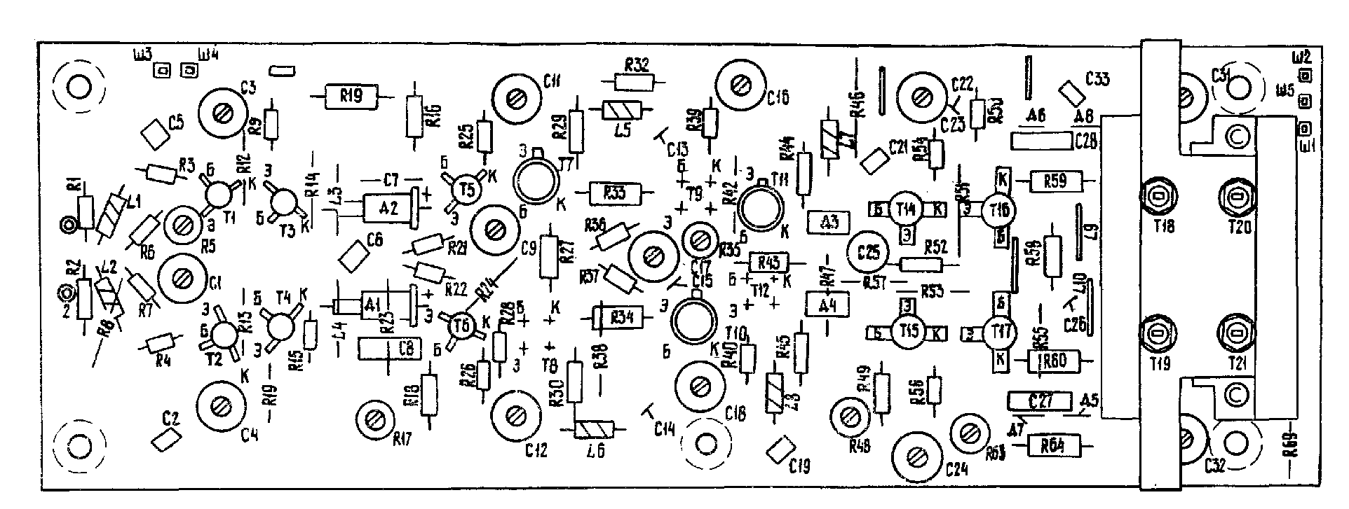 Рис. 3. Расположение элементов на лицевой стороне платы усилителя вертикального отклонения.