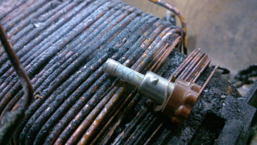 - После этого уложите проволоку на основу виток к витку, делая изоляцию между слоями бумагой или изолентой в несколько слоев. Конец и начало обмоток выведите и надежно закрепите на корпусе. Чтобы припаять к ним провода, зачистите изоляцию ножом.