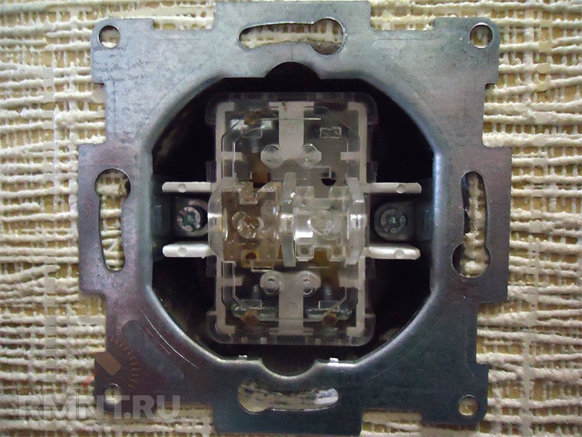 Рис. 4. Пример крепления двухклавишного проходного выключателя в стену