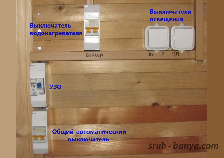 Вся энергетическая система банного сооружения будет запитываться именно от этого устройства – электрощитка.