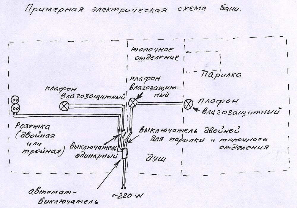 СОВЕТ Как вариант, подумайте о том, чтобы разделить группы по помещениям — комната отдыха, моечная, парная, предбанник. В этом случае проще устранять неполадки, а также можно подобрать автомат, соответствующий нагрузке, которая планируется в том или ином помещении.