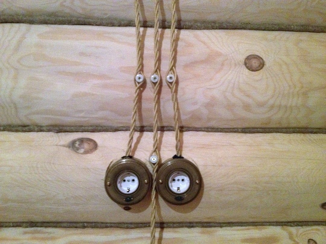Электропровдка в деревянной бане устанавливается открытого типа, поверх стен