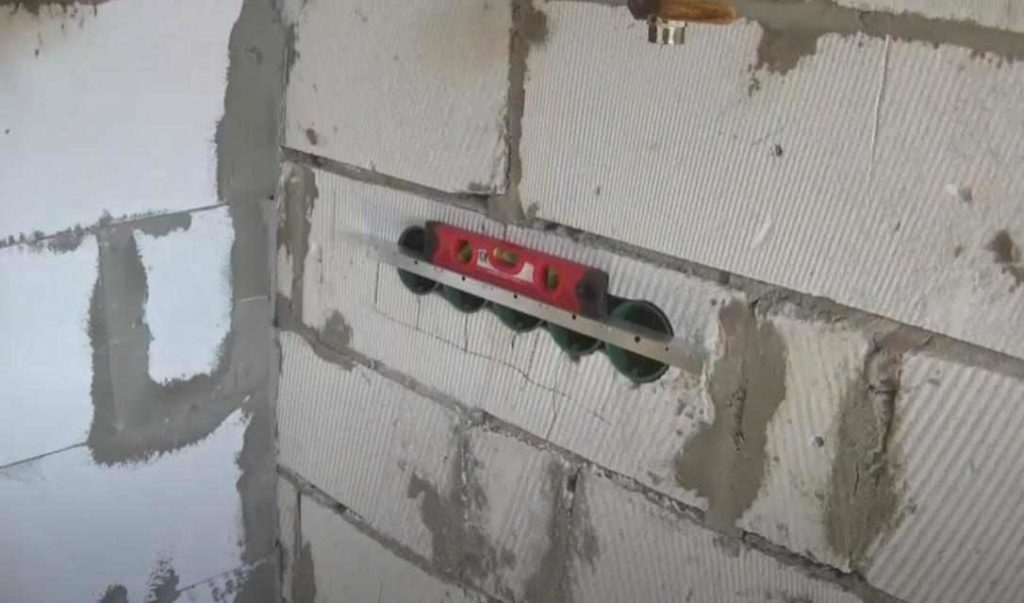 - Выполняют монтаж с отклонением от осей подстаканника по отношению к стене. В этом случае при заполнении ниши раствором он «плывет».