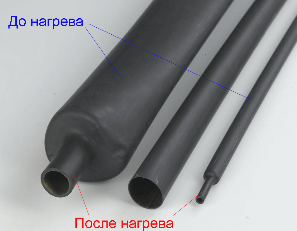 Важно чтобы после усадки диаметр трубки уменьшался до размеров, которые меньше диаметра изоляционного слоя провода (жилы вместе с изоляцией)